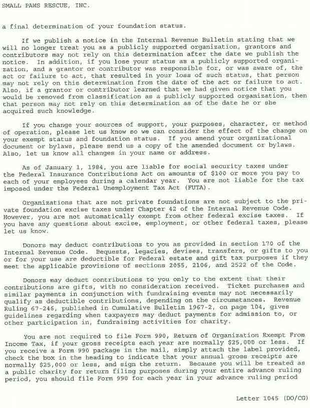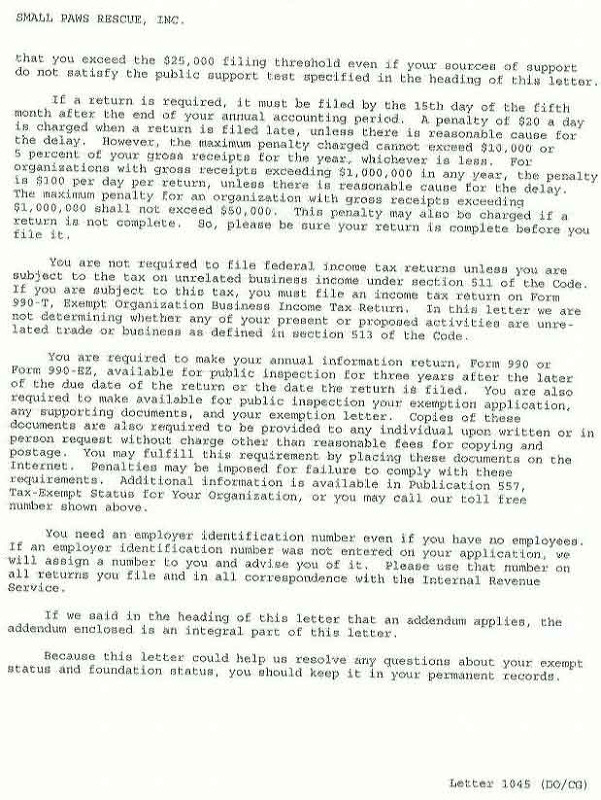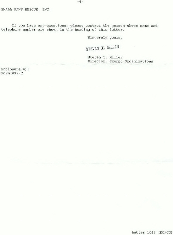 Small Paws®Rescue Inc. is 501-C3 Tax exempt charitable organization. All donations are tax deductable.